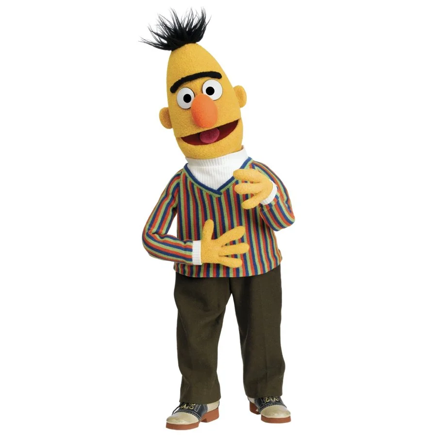 Bert lives with his best friend and roommate, Ernie, in the basement apartment of 123 Sesame Street. Bert is very serious and enjoys collecting bottle caps, eating oatmeal, and being organised. He has a pet pigeon named Bernice.