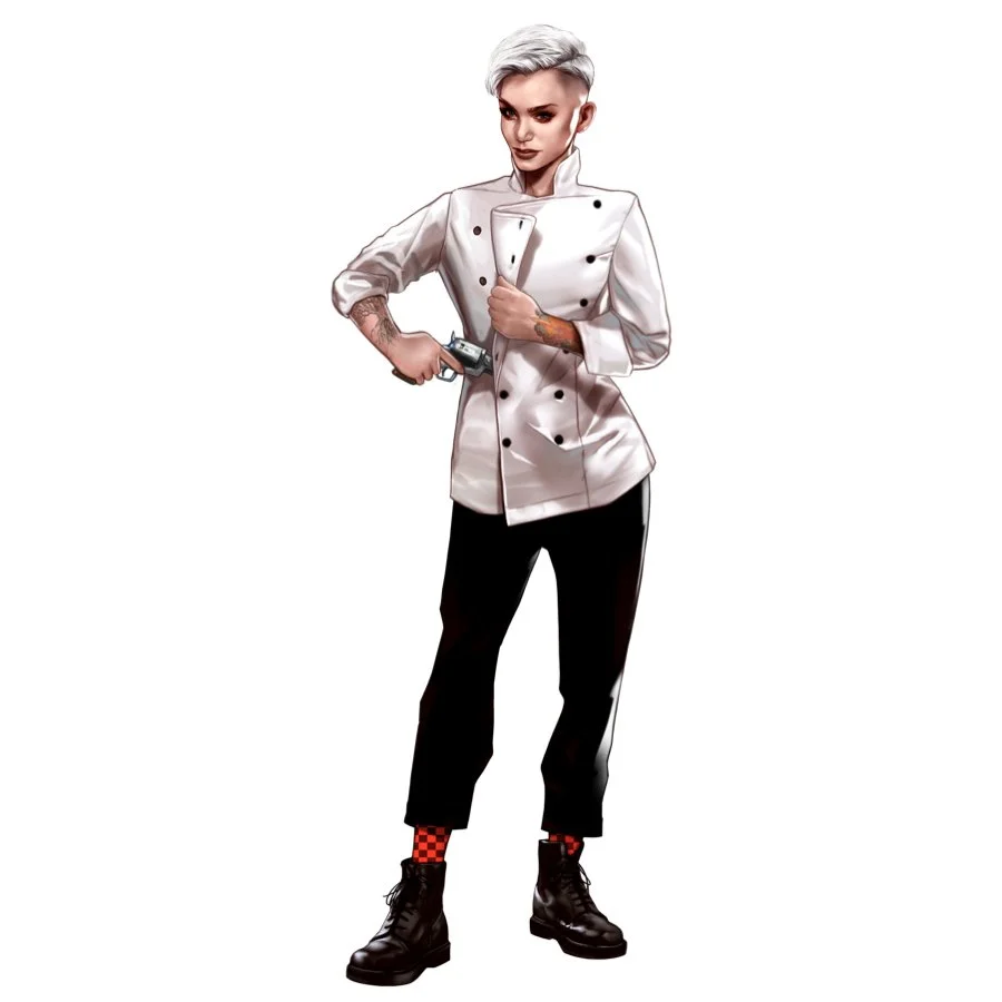 An up-and-coming chef full of youthful ambition and fresh ideas. She's been running Black's kitchen for years, but finds his uninspired menu creatively stifling and dreams of opening a restaurant of her own. Her plan relies on talent, persistence... and the money she's been skimming from Boddy Black, which he's known about all along. She has two choices: thanklessly run Black's drab hotel restaurant, or face charges.
