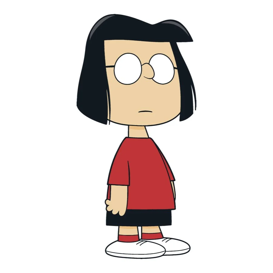 Marcie is Peppermint Patty’s best friend and polar opposite. They met at summer camp and have been inseparable ever since. Even though Peppermint Patty can’t stand it, Marcie insists on calling her either by her given name, Patricia, or more commonly, “Sir”. Marcie is quiet and composed. She enjoys going to school and gets very good grades. She would prefer to root from the stands than play on the field. She’s is quite fond of Charlie Brown, whom she calls, “Charles”.