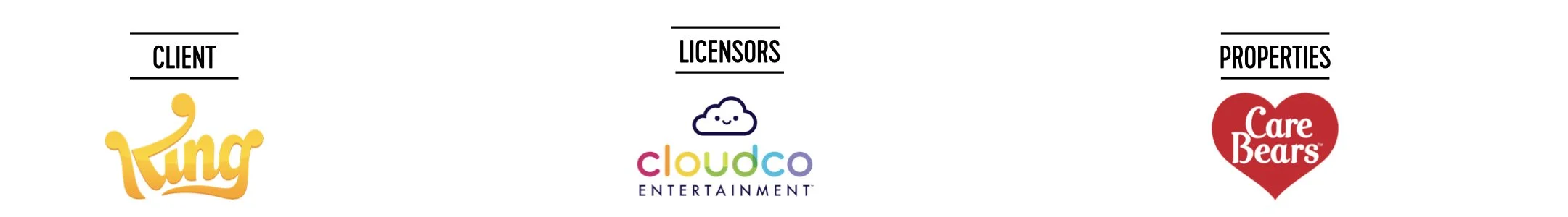 As always, we managed the approval process from start to finish, helping with the release of assets, submitting initial concepts, WIP assets and reskins for the Care Bears team’s approval to ensure they were happy with how the assets were being developed within the gaming season. We were able to meet King’s key deadlines in an efficient and expedited manner, making sure the partnership was ready for delivery.